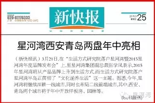 此外,《新快报》亦重点关注星河湾城市布局,着重报道星河湾西安、青岛两盘年中亮相,并将于年中开放样板房、园林等,为关注星河湾的朋友传递了2015年的最新动作。